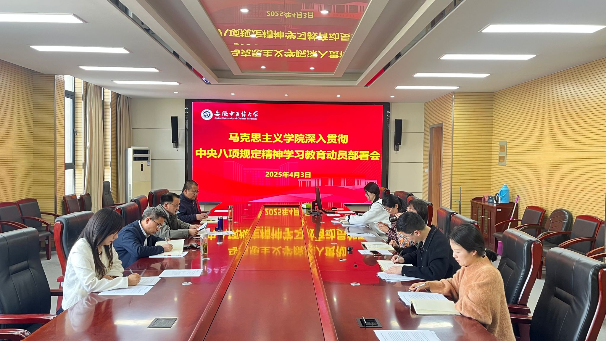 4月3日下午,马克思主义学院召开深入贯彻中央八项规定精神学习教育动员部署会。学院党总支委员、支部书记、纪检工作小组成员和行政人员参会,学院党总支书记黄学武主持会议。会上,与会同志重点学习了《习近平关...