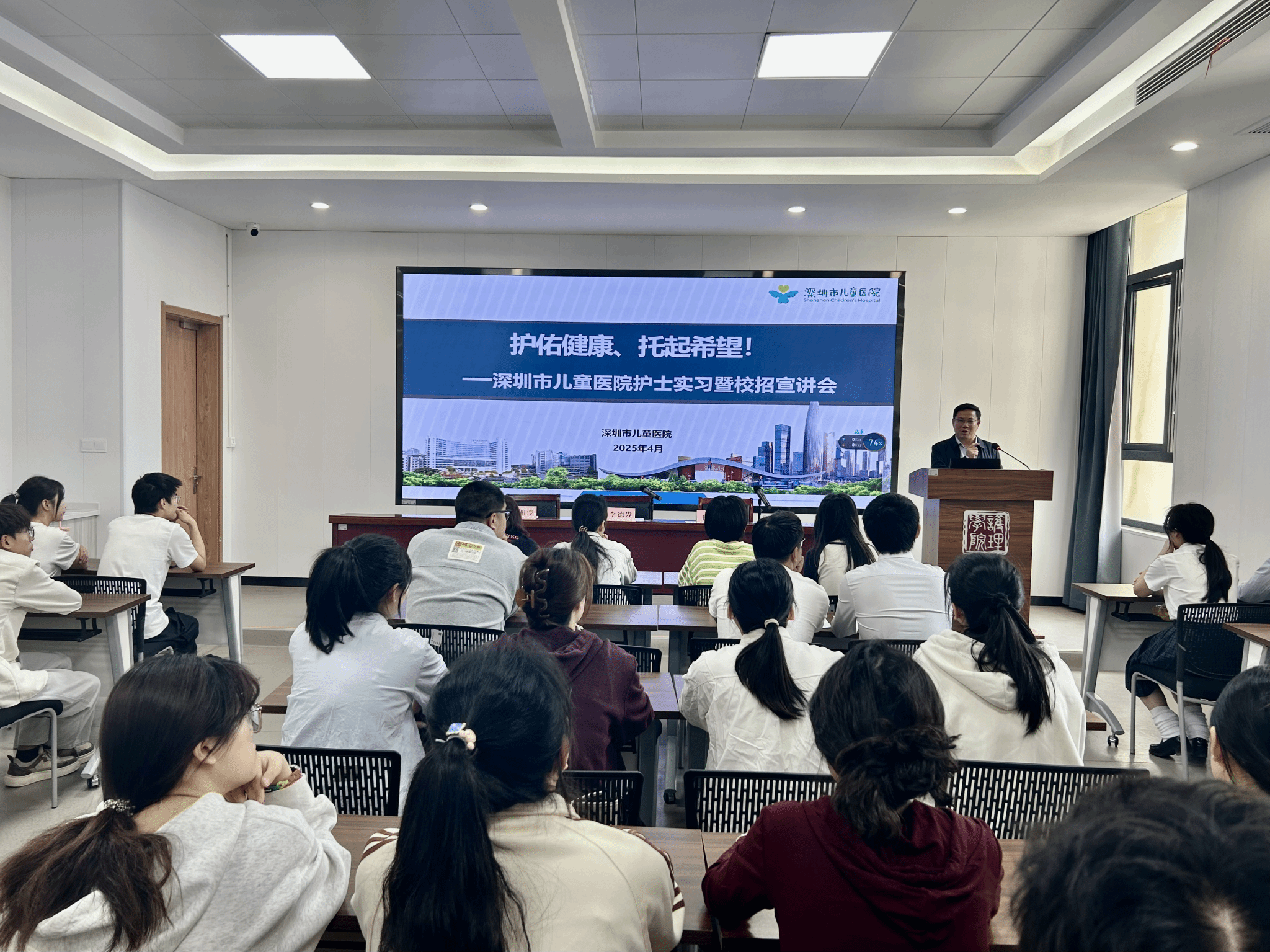 4月9日上午,深圳市儿童医院副院长李德发一行应学生处、护理学院邀请来校开展护理人才专场招聘。在宣讲环节,李德发着重阐述了医院的战略定位与发展优势,他表示作为广东省唯一一家三级甲等儿童专科医院,通过“...
