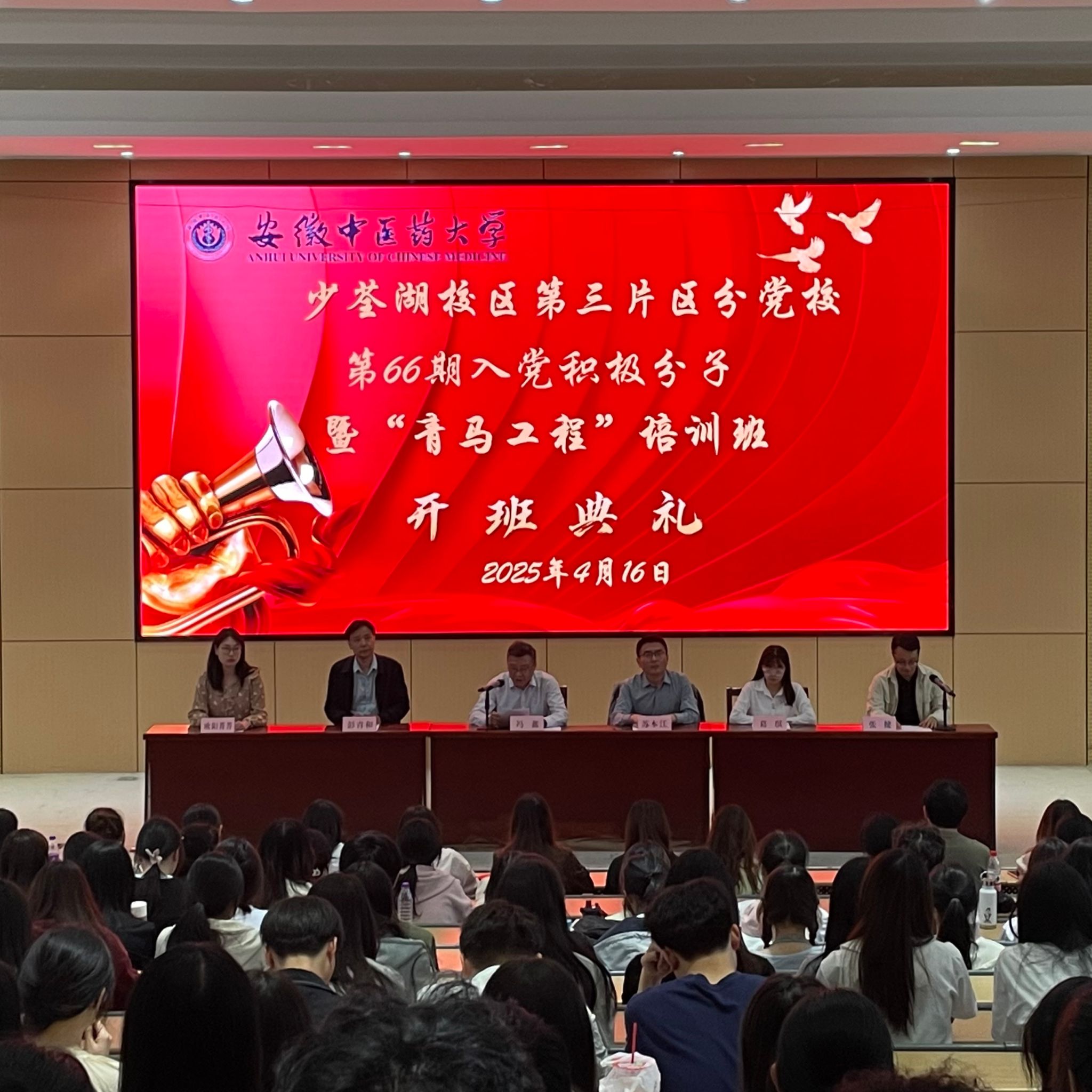 4月16日晚,少荃湖校区第三片区分党校举行第66期入党积极分子暨“青马工程”培训班开班典礼。医药经济管理学院党委书记冯鑫,护理学院党委书记苏本江,人文与国际教育交流学院党总支副书记彭青和出席开班式。相关...