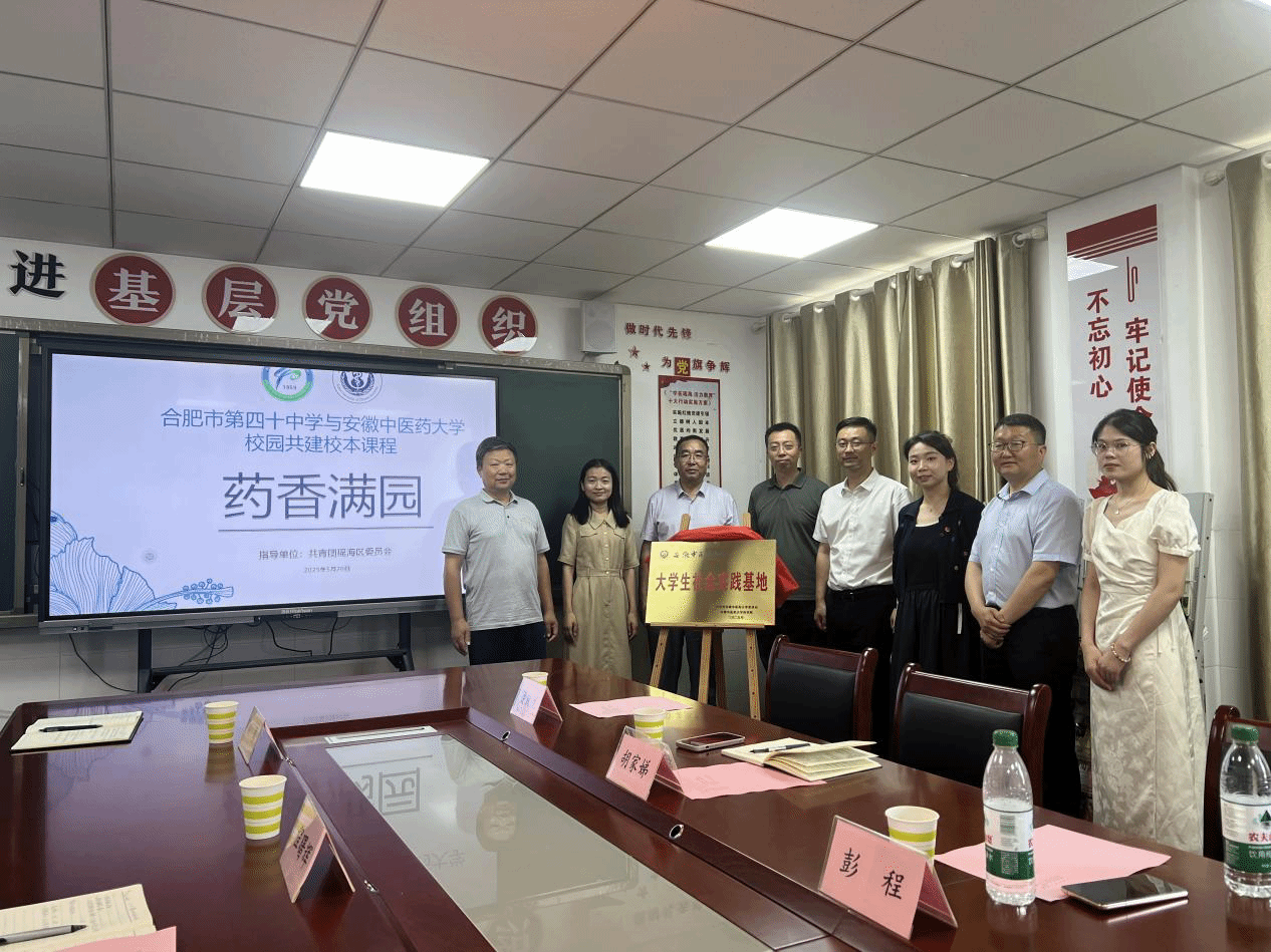 5月20日下午,安徽中医药大学药学院和合肥市第四十中学开展校本课程共建活动。校团委书记彭程,药学院党委副书记陶曜天,团瑶海区委书记胡家娣,药学院中药教师党支部书记杨青山、团委副书记聂欣悦、教师文珊珊以...
