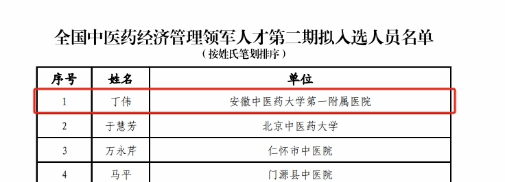 近日,国家中医药管理局规财司完成全国中医药经济管理领军人才第二期学员选拔工作,我校第一临床医学院丁伟入选入选全国中医药经济管理领军人才第二期学员培养对象。中医药经济管理人才作为中医药人才的重要组成...