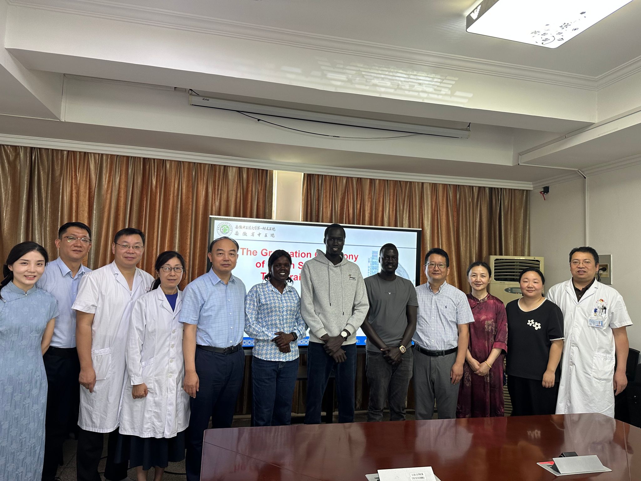 6月17日上午,第一临床医学院举行2025年度南苏丹进修人员结业典礼,庆祝三位南苏丹医务人员顺利完成中医进修学习。安徽省卫生援外办公室主任张松卫,学校外事办副主任昂文平,医院院长杨文明,医院相关职能部门负...