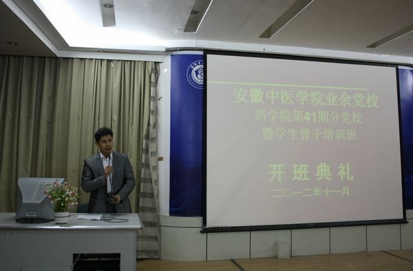 11月5日晚,药学院分党校第41期入党积极分子暨学生骨干培训班开班典礼在西区学术报告厅举行。学校党委组织部组织员、党校办公室主任韩加生,药学院党总支副书记张亚辉和本期业余党校班主任金晓琴出席了开班典礼。...