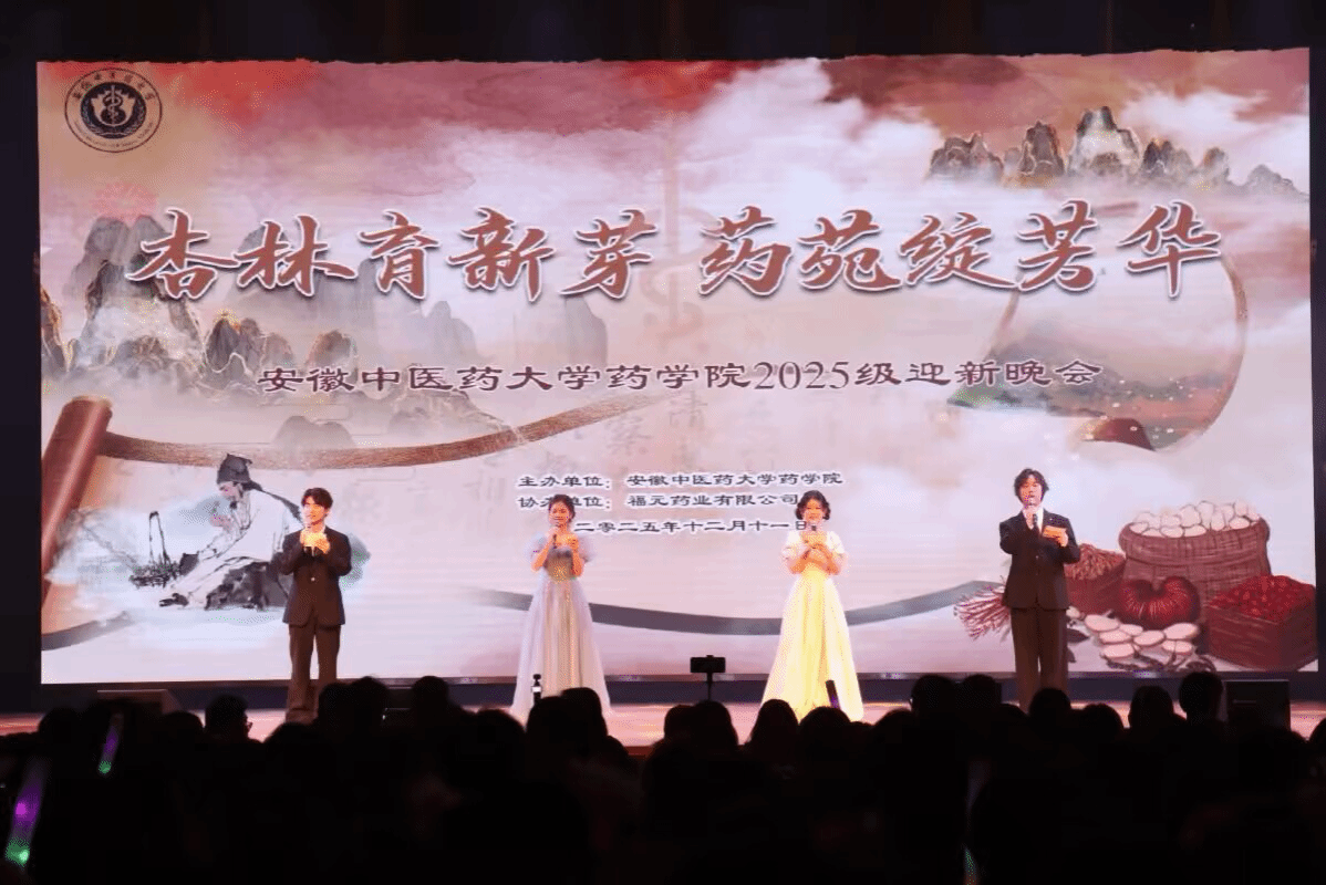 12月11日晚,药学院2025级“杏林育新芽,药苑绽芳华”迎新晚会在少荃湖校区大学生活动中心举办。本次晚会在青年艺术中心乐队的激昂演奏中拉开序幕,乐队开场即点燃全场热情;舞蹈《晨光破晓》以灵动舞姿展现青春...