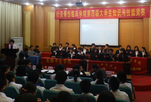 11月7日晚,针灸骨伤临床学院第四届大学生知识与技能竞赛在图书馆学术报告厅举行。该院领导胡玲、杜明、唐巍、翟从永等担任评委。 本次大赛共有11国针、11康复、11医保、11针推、11骨伤5个队伍,分为个人必答...