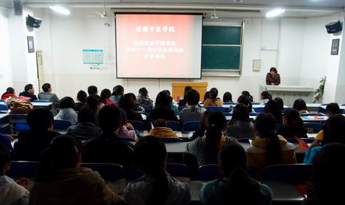 为进一步加强中医药英语的发展力度,提高全体教师的专业英语教学水平,国际教育交流学院开展了一系列全英文教学活动。11月9日,新一轮中医药英语讲堂开始了。下午3:00,夏晓红博士用英文讲解了中医内科学“cough...