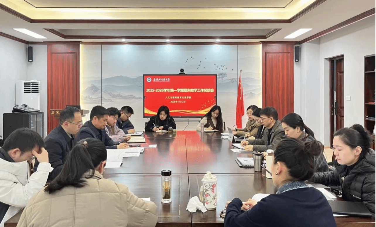1月12日,人文与国际教育交流学院召开2025-2026学年第一学期期末教学工作会议,深入学习贯彻2026年全国教育工作会议精神,全面总结学期教学工作,聚焦学校“双一流”核心目标部署2026年重点任务。各系(中心)负...