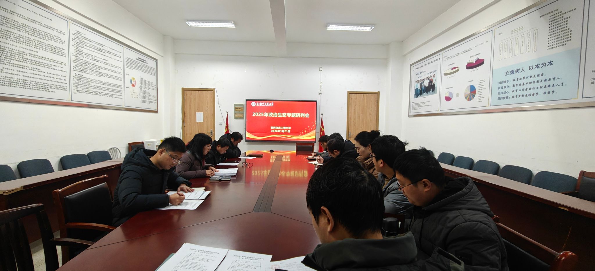 1月21日上午,医药信息工程学院召开2025年政治生态分析研判会议,学院领导班子成员、党委委员、党支部书记参加会议,会议由学院党委书记高霞主持。会上对学院2025年学院政治生态的总体情况进行总结,指出存在的问...