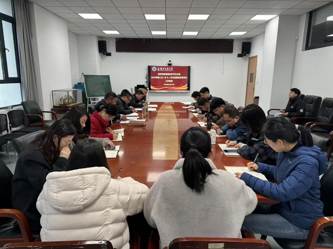 2月27日上午,药学院党委召开理论学习中心组(扩大)2026年第二次学习会暨党支部书记工作例会。会议由党委书记胡卿主持,学院党委委员、班子成员及各支部书记参会。本次学习会以“深学细悟正确政绩观,筑牢廉政建...