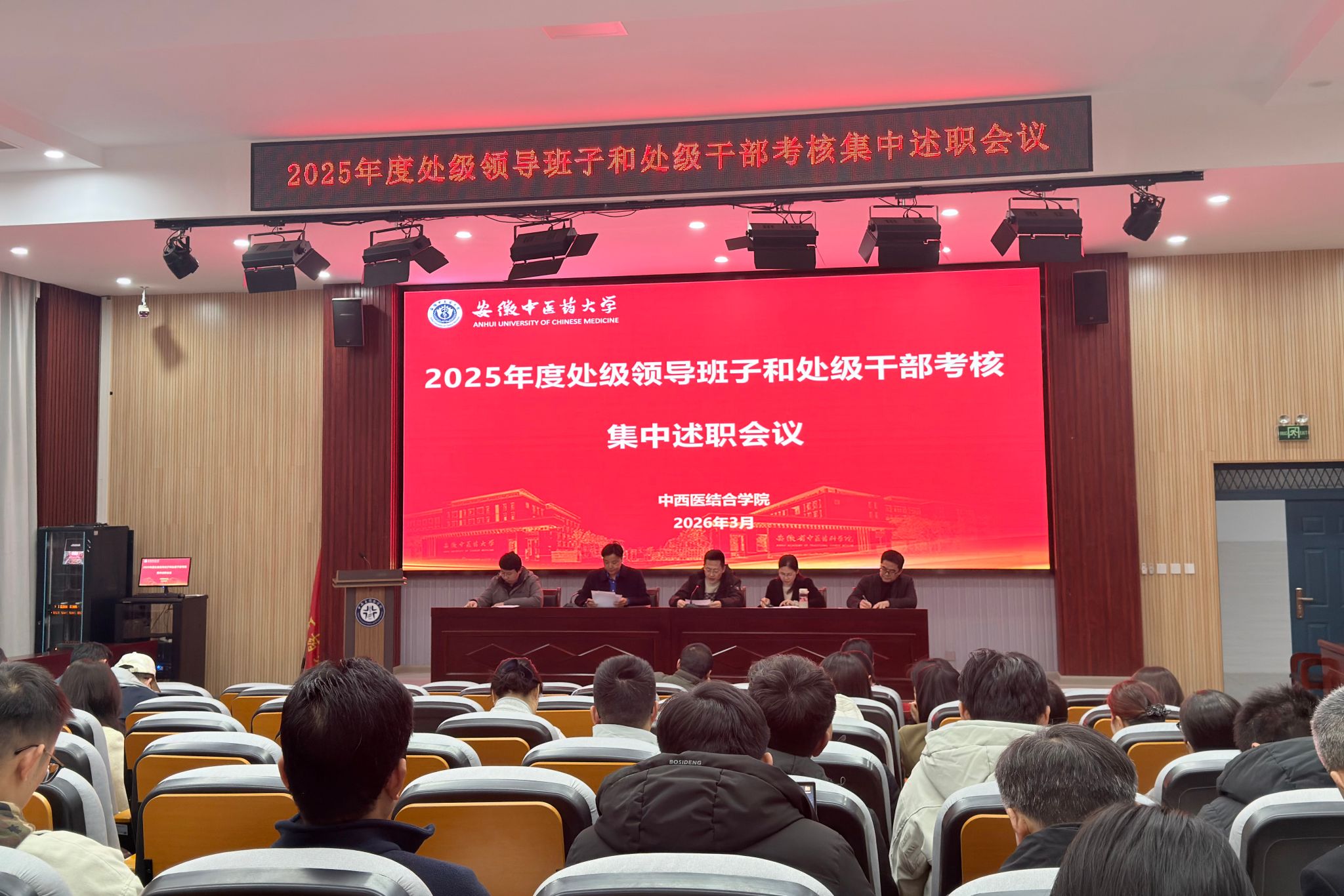 3月11日下午,中西医结合学院召开2025年度处级领导班子和处级干部考核集中述职会,学院党政领导班子、全体教职工参加。会议由学院党委书记李舰主持。会上,李舰代表学院领导班子作了2025年度工作总结报告,从党的...