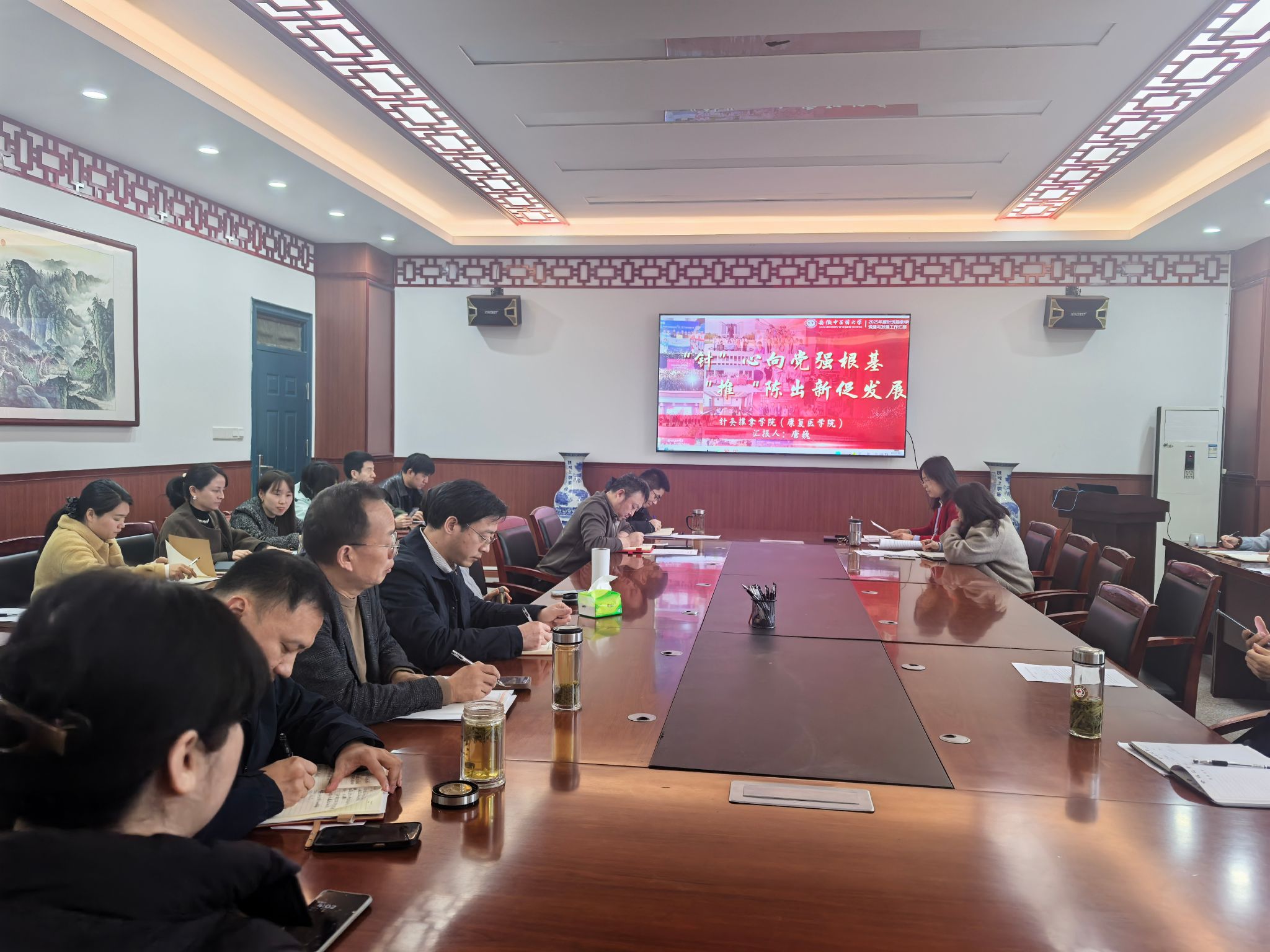 3月11日下午,针灸推拿学院召开2025年度处级领导班子和处级干部考核集中述职会,学院党政领导班子、全体教职工参会,会议由学院党委书记唐巍主持。会上唐巍代表学院处级领导班子,从党建引领、教学建设、学科发展...