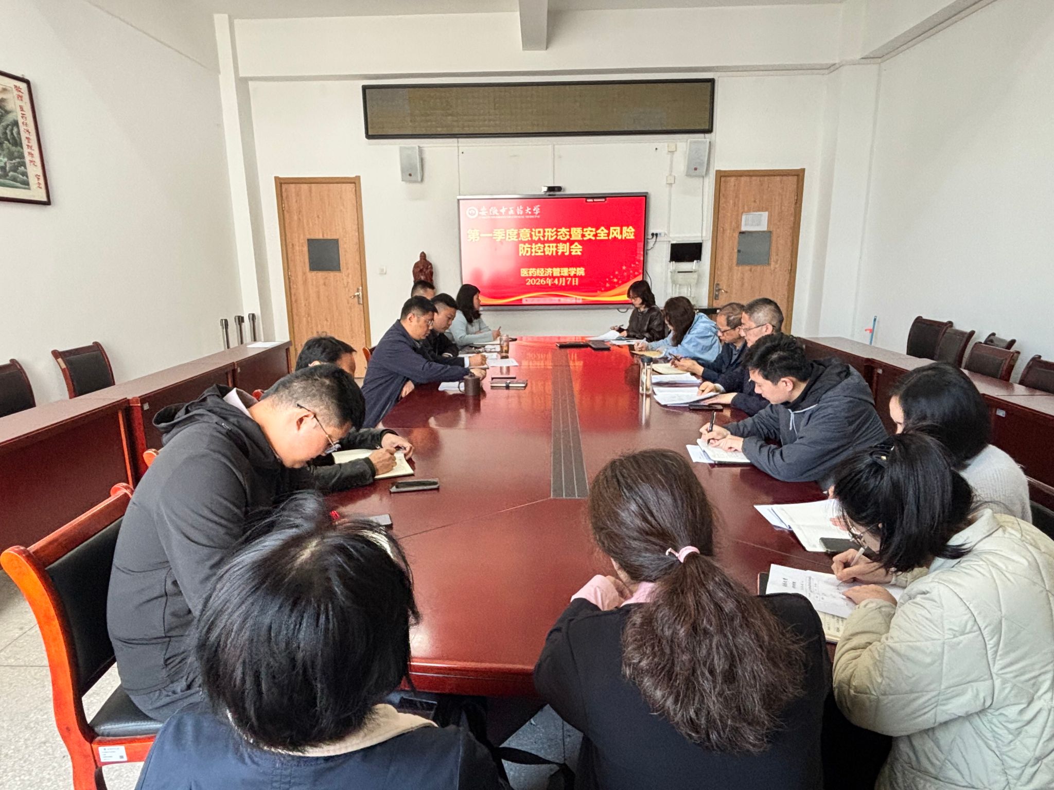 4月7日,医药经济管理学院召开2026年第一季度意识形态暨安全风险防控研判会。学院党政领导、党委委员、各教研室(中心)主任、各办公室负责人、全体专兼职辅导员参加会议。会议由学院党委书记张军主持。会议听取...
