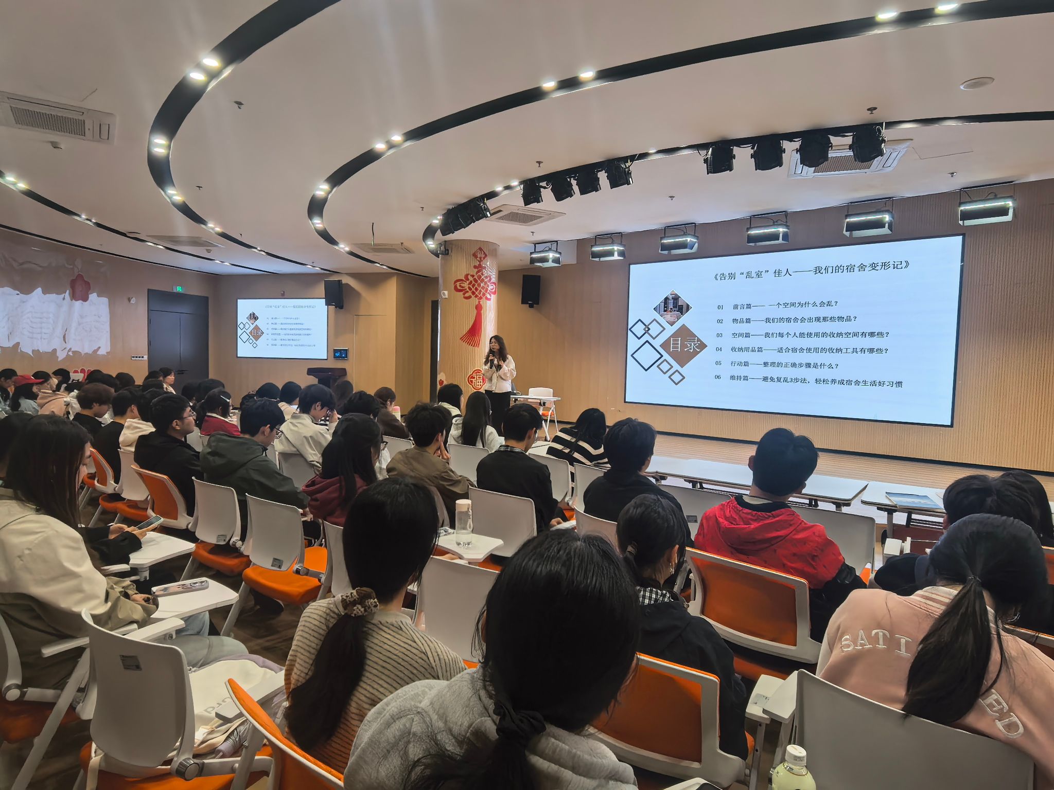 为提升学生自我管理能力,营造整洁宿舍环境,4月14日晚,学生处(学工部、研工部)在大学生“一站式”岐黄社区举办宿舍收纳专题讲座,特邀专业收纳整理师主讲,120余名学生到场参与。讲座中,收纳整理师从“空间...