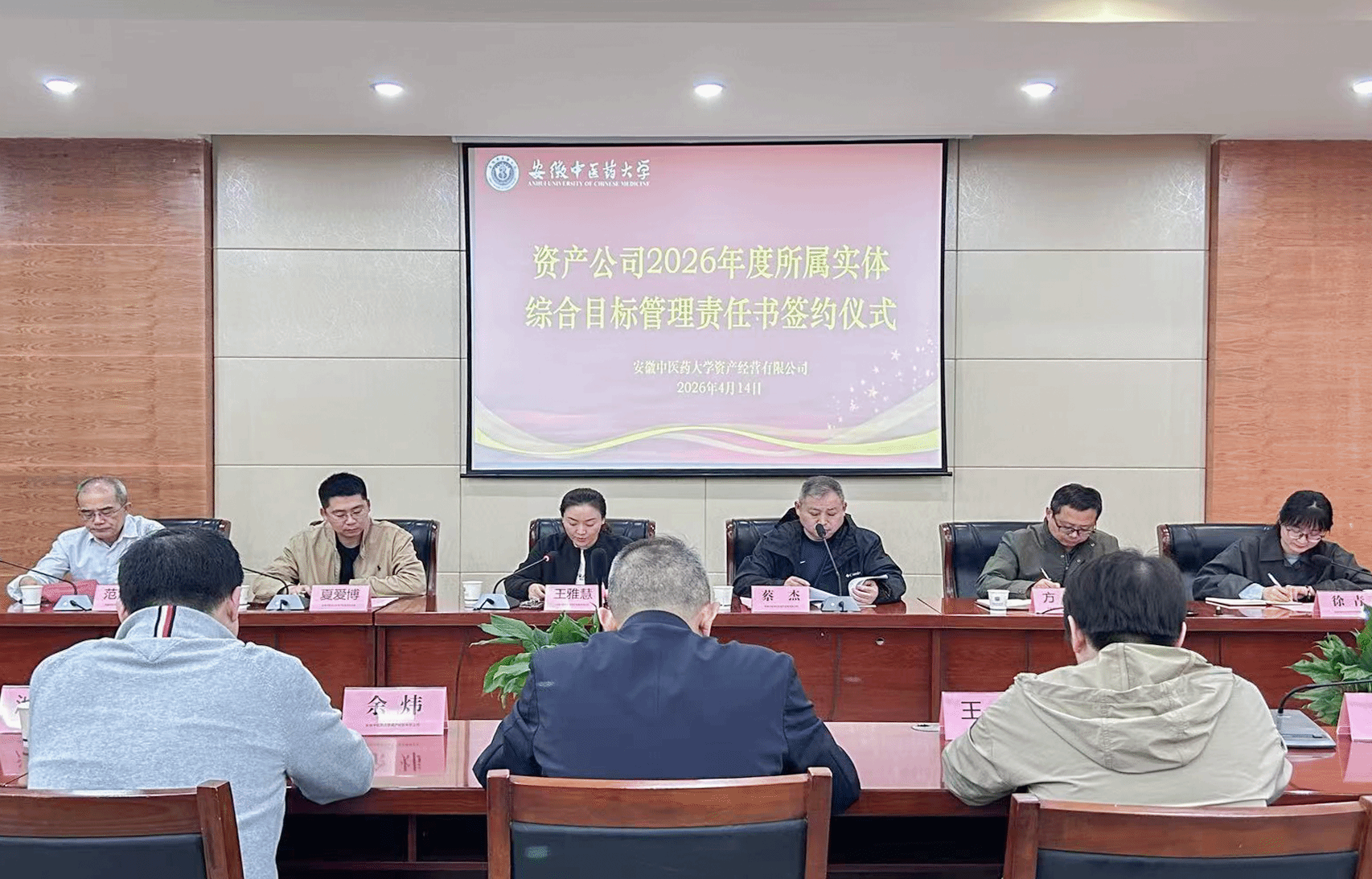4月14日下午,资产经营有限公司在梅山路校区新安楼举行了所属实体2026年度综合目标管理责任书签约仪式。公司领导班子、职能部门及各实体负责人参会。会议由公司党委副书记、纪委书记王雅慧主持。会上,公司党委副...