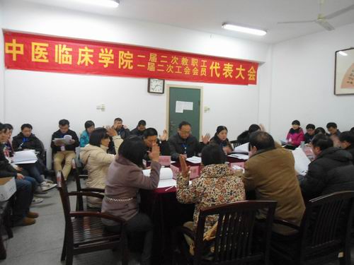 2012年12月28日,中医临床学院隆重召开一届二次教代会、工代会。校工会常务副主席陈永康与会。 会议由该院党总支书记吴毅彪主持,该院党总支副书记况执本作《提案工作报告》,该院院长周美启作《解放思想、凝...