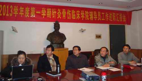 12月28日上午,针灸骨伤临床学院组织召开了2012-2013学年第一学期辅导员工作述职汇报会,该院党总支书记杜明、副院长沈德凯、党总支副书记翟从永出席会议,会议由翟从永主持。 杜明在听取各位辅导...