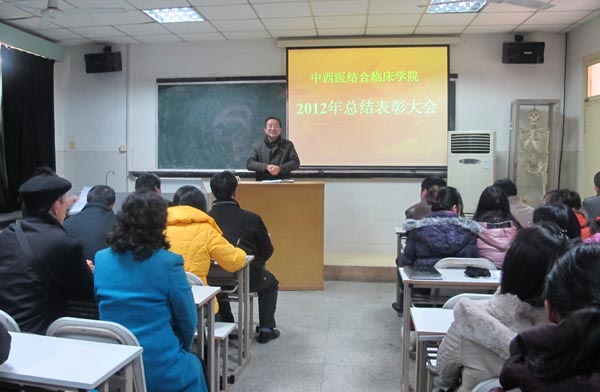 1月17日,中西医结合临床学院召开2012年度总结表彰大会,该院全体教职工参加会议。 该院党总支书记吴成长主持会议并做总结发言。他充分肯定了全院教职员工一年来的敬业奉献精神和所取得的优秀成绩,各教研室牢...