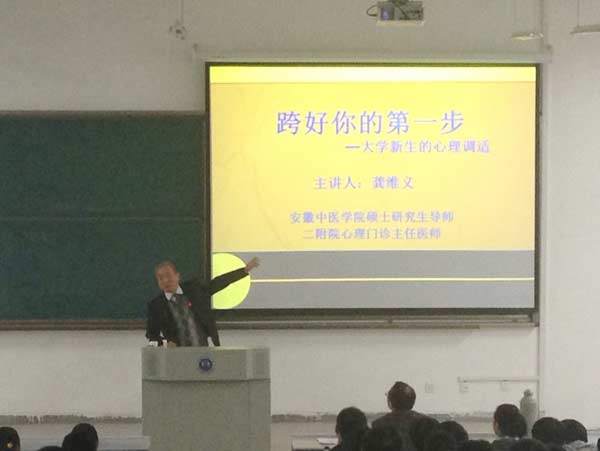 10月20-21日晚,中西医结合临床学院2013级新生入学教育系列专题讲座深入开展,该院特别邀请心理专家龚维义教授和招生与就业处副处长孟庆全为新生开展心理健康和职业生涯规划教育讲座,讲座由该院党总支副书记顾义...