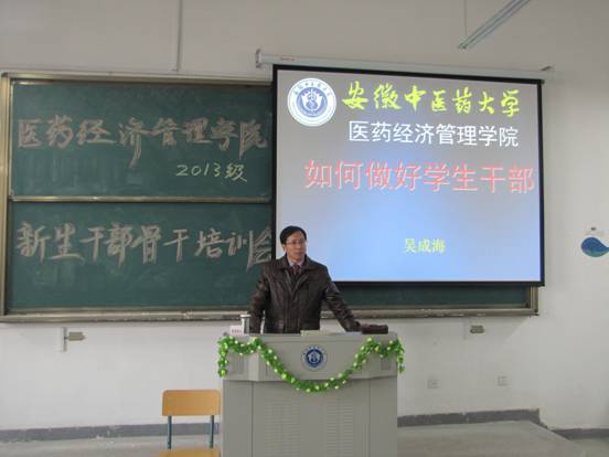 学生干部骨干是学生工作的重要力量,为了使每一位新生学生干部成为有能力可胜任的学生工作骨干,医药经济管理学院于12月11日下午举行了新生干部骨干培训会,该院党总支书记吴成海主讲,党总支副书记黄学武及部分班...