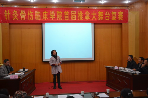12月4日下午,针灸骨伤临床学院在梅山路校区图书馆学术报告厅举办首届推拿大舞台复赛。比赛特邀校附属中西医结合医院院长何光远,第一附属医院针推科副主任吕子萌,第二附属医院推拿科主任蒋涛,该院康复教研室主...