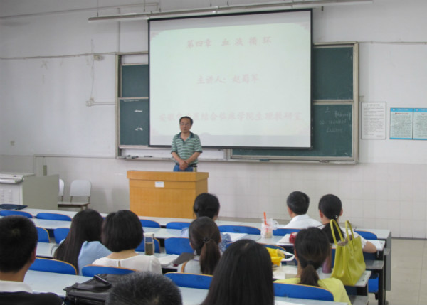 日前,中西医结合临床学院举行名师说课活动(之六),由生理学教研室主任赵蜀军副教授主讲。该院党政领导和全体教职工参加了本次活动,活动由该院院长黄金玲主持。 赵蜀军以《生理学》“血液循环”一章为大家讲授...
