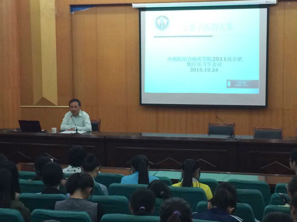 10月24日,中西医结合临床学院在图书馆学术报告厅召开了2011级在肥实习生会议。该院副院长陈光亮、实习就业秘书以及全体在肥实习生参加了此次会议。 会上,陈光亮结合医学专业特点,强调了医学生临床实习的重要性...
