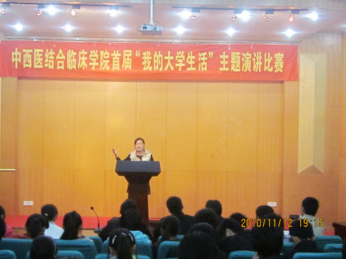 11月12日晚,中西医结合临床学院在图书馆学术报告厅举办首届“我的大学生活”主题演讲比赛,共有来自该院一年级的32名选手参加比赛。 比赛中,选手们围绕“我的大学生活”,分别用三至五分钟时间展...