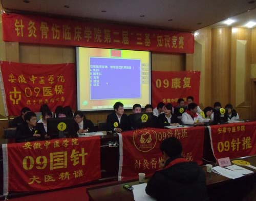 12月27日针灸骨伤临床学院第二届“三基”知识竞赛在学术报告厅隆重举行,此次竞赛的参赛班级有09骨伤、09医保、09针推、09国针及09康复。该院党总支副书记翟从永、团总支书记、学生工作秘书出席此次活动并担任颁...