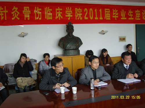 3月22日下午,针灸骨伤临床学院召开2011届毕业生座谈会,校招就处副处长孟庆全、该院副书记翟从永、毕业班辅导员及部分毕业生代表参加了会议,会议由翟从永主持。 翟从永介绍了此次会议的目的,主要是了解毕业...