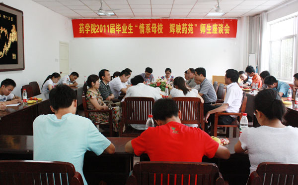 6月13日下午,药学院召开2011届毕业生“情系母校 辉映药苑”师生座谈会,该院党总支书记方成武,副院长金传山,党总支副书记张亚辉及各教研室主任、实验中心主任等出席座谈,与毕业生代表们共聚一堂,相互祝福,...