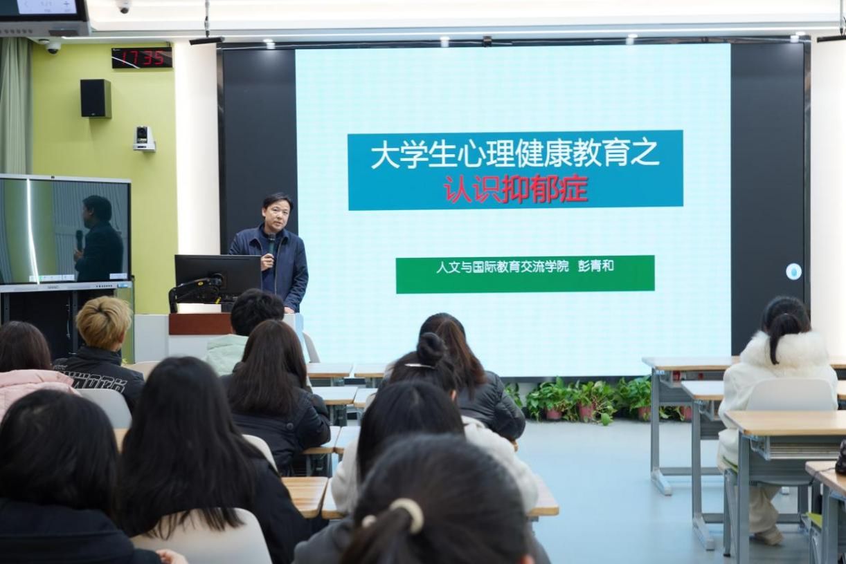 为深入推动学院大学生心理健康工作,12月15日晚,人文与国际教育交流学院开展2023年下半年心理骨干系列培训活动,本次培训主题为“大学生心理健康教育之认识抑郁症”,由学院党总支副书记彭青和老师主讲,学院全...