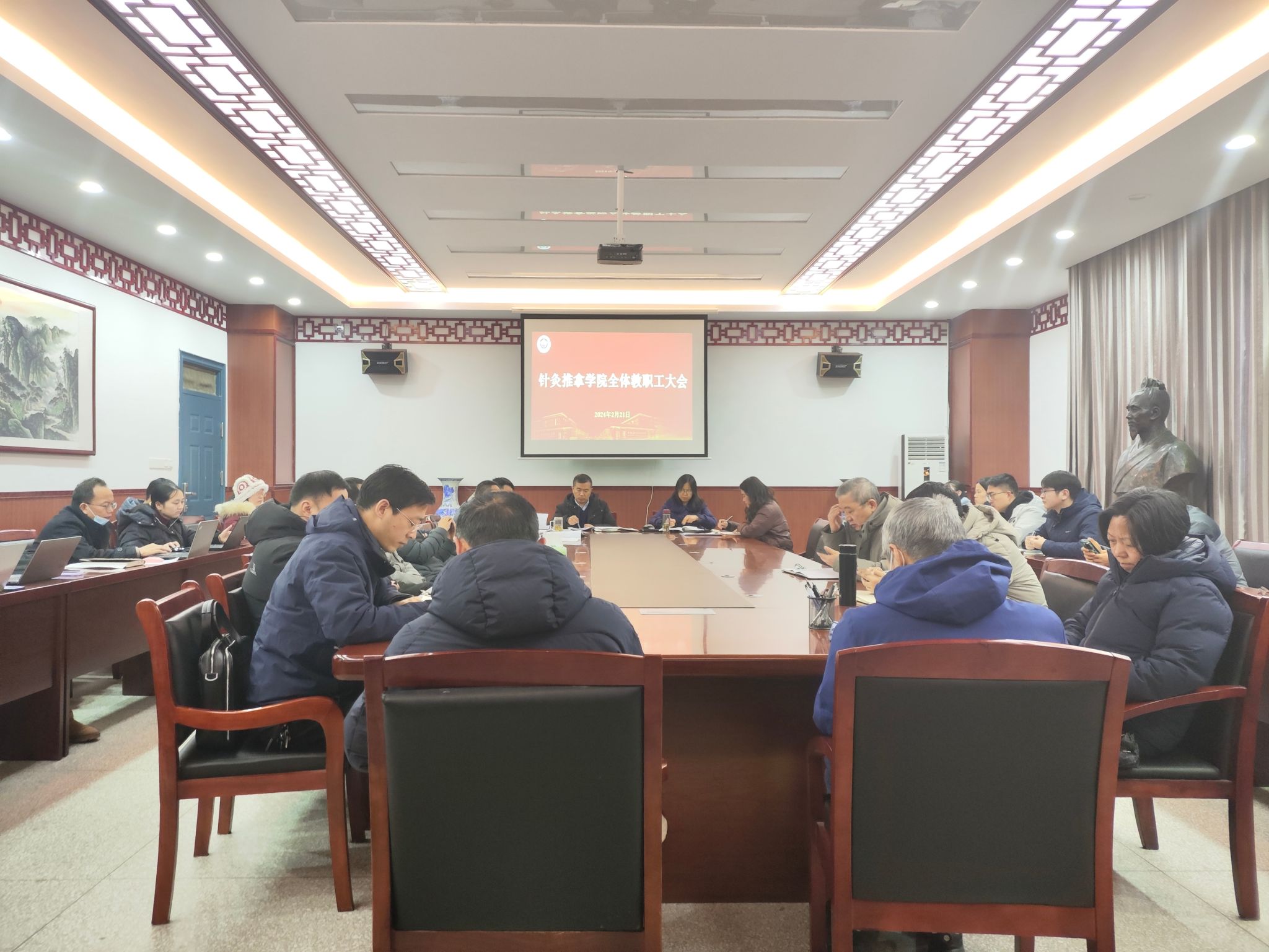 2月21日下午,针灸推拿学院组织召开2023-2024学年第二学期全体教职工会议,学院党政领导及全体教职工参加本次会议,会议由学院党委书记雷黎主持。会上,雷黎领学了2024年全国教育工作会议精神、全省教育工作会议...