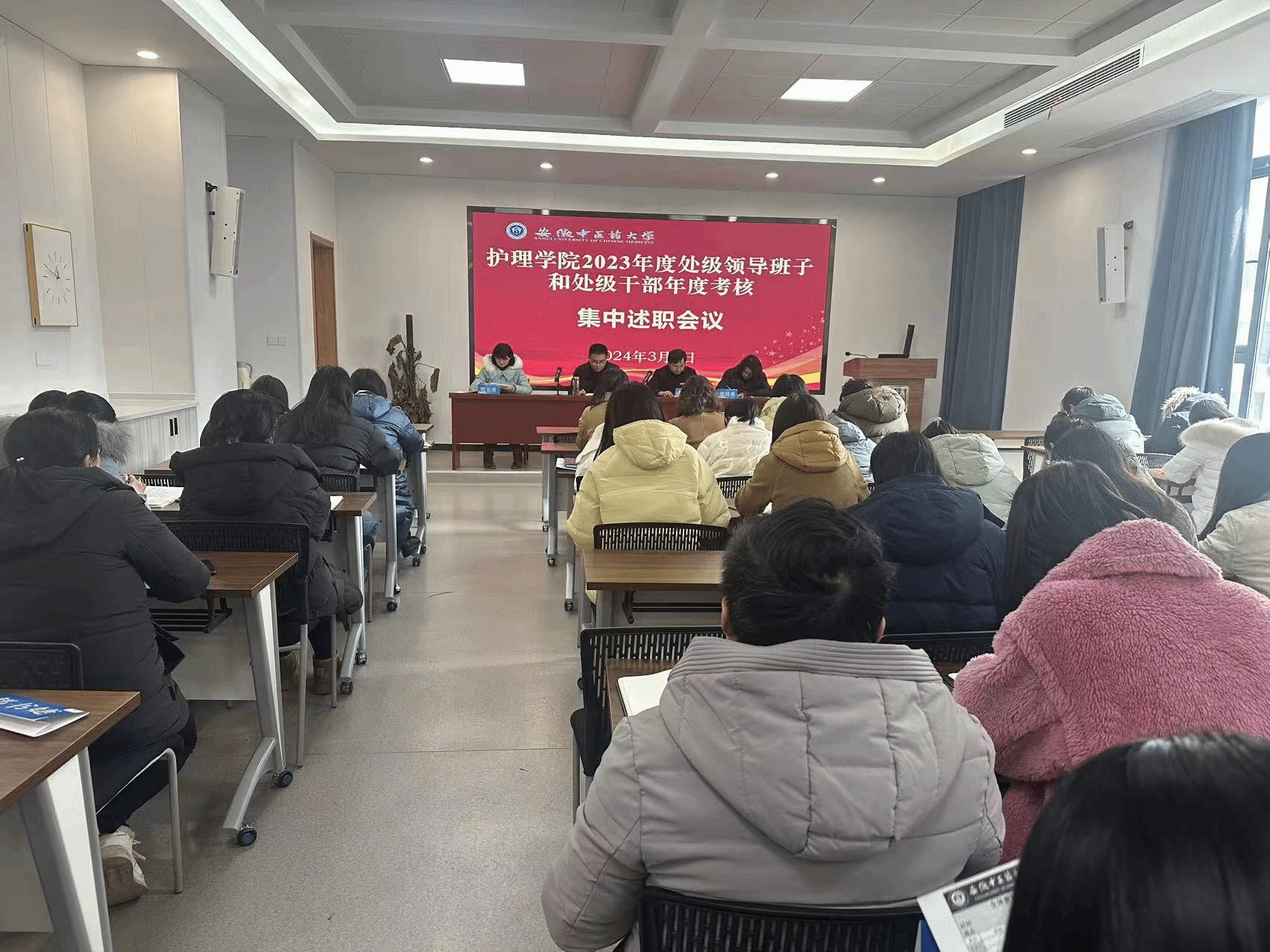 3月1日下午,护理学院召开全体教职工大会,落实2023年度处级领导班子和处级干部考核集中述职,就学院新春工作作出布置。会上,学院党委书记苏本江代表学院处级领导班子述职,报告了2023年度学院党建和事业发展取...