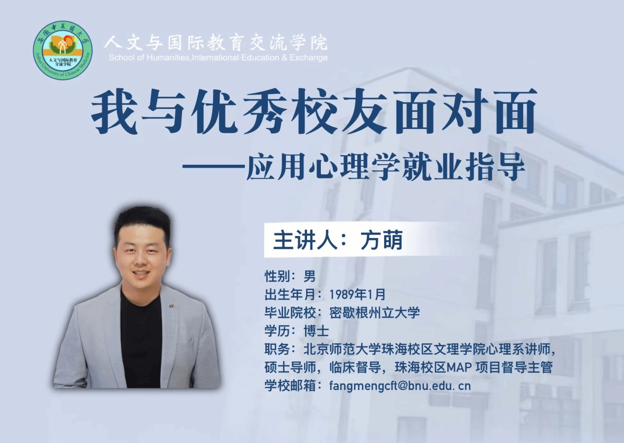 为加强应用心理学专业学生学业指导,明晰职业规划,3月1日上午,学院邀请北京师范大学珠海校区文理学院心理系我校2012届应用心理学专业优秀毕业生方萌博士作专题辅导,全体辅导员和大一、大三年级应用心理学专业...