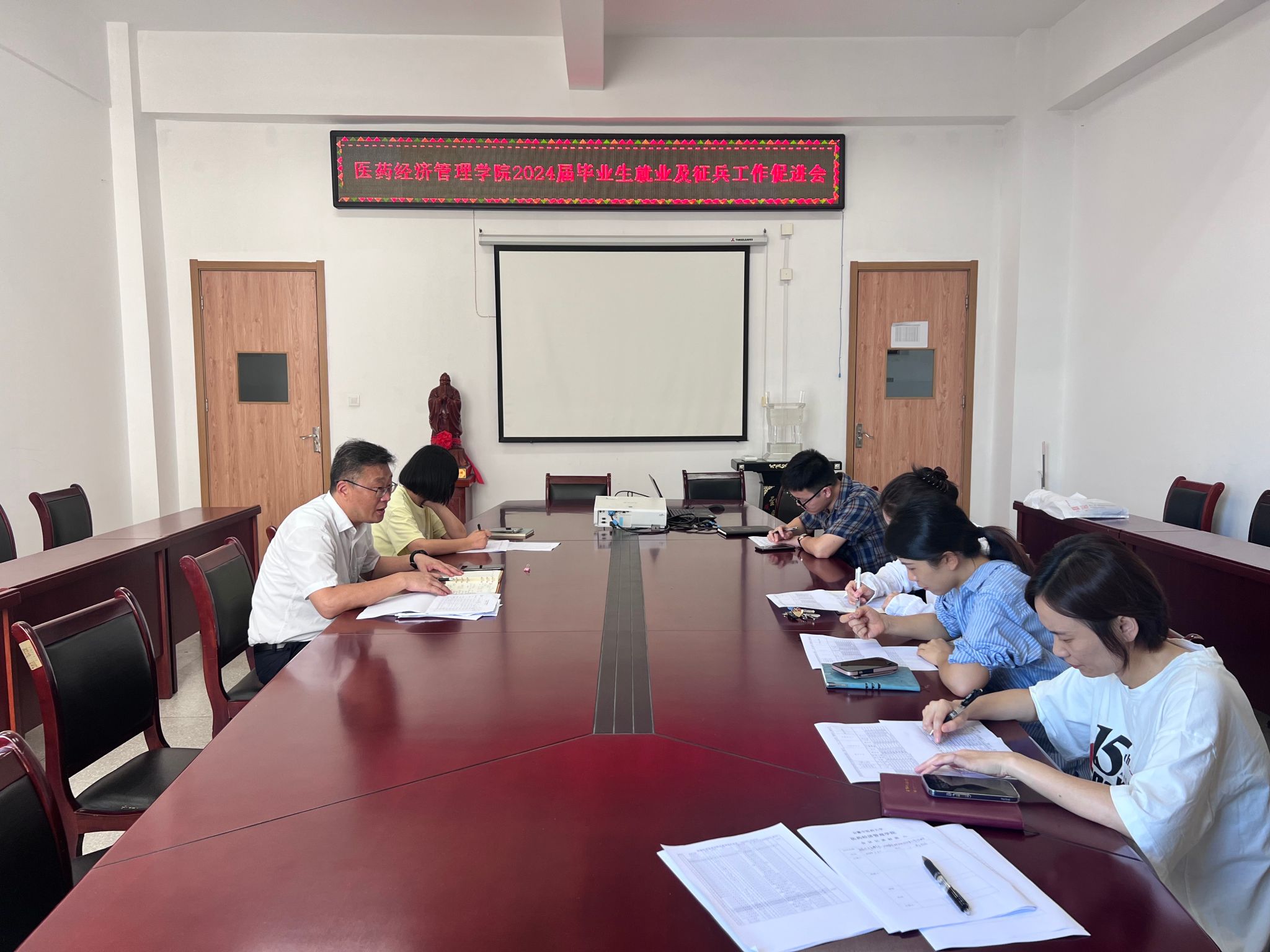 7月30日上午,医药经济管理学院召开2024届毕业生7月份就业及征兵工作促进会,学院党政领导、各毕业班辅导员及实习与就业办老师参加。会议由学院党委书记冯鑫主持。会上,冯鑫传达了学校2024届毕业生就业工作7月份...