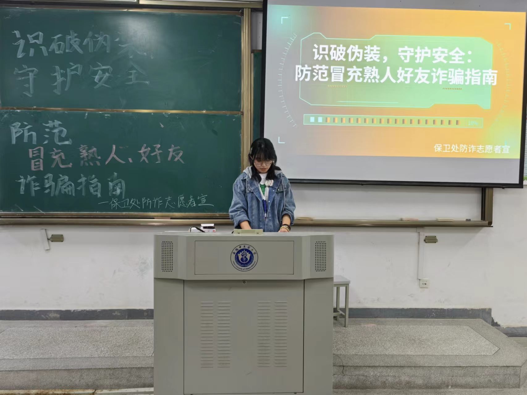 为持续提升大学生的反诈意识,尤其是增强对冒充熟人、好友诈骗的防范能力,10月11日,保卫处防诈志愿者开展反诈小课堂系列活动之“慧眼辨真假,警惕熟人骗”。防诈志愿者夏雨晴列举了冒充老师、同学、好友或家人...