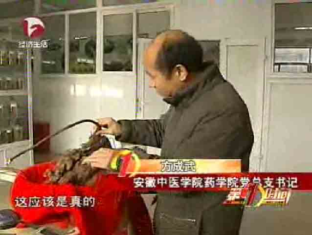 日前,合肥居民周女士在家中挖出一个九斤多重的何首乌。为了了解何首乌的真假和药用价值,安徽电视台《第一时间》记者陪同周女士前来我校咨询中药专家。药学院党总支书记方成武副教授和中药标本中心主任刘鹤龄副...