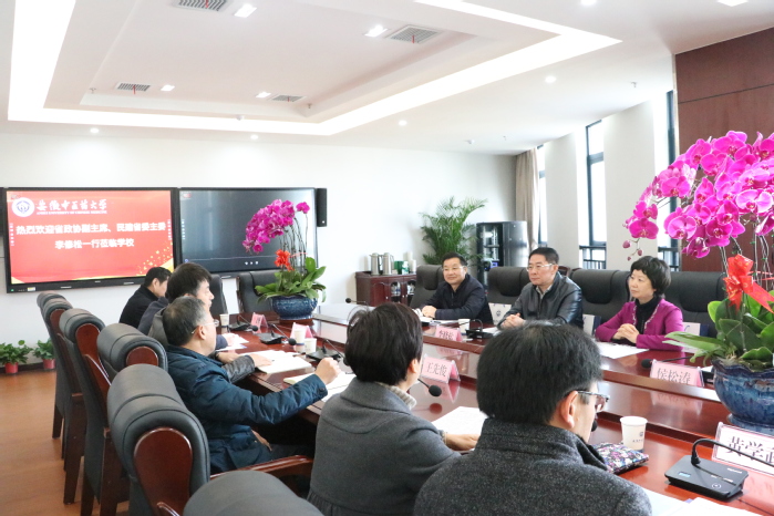 12月2日,安徽省政协副主席、民建省委主委李修松,安徽省政协副秘书长、民建省委专职副主委李霞,民建省委秘书长史扬龙,民建省委办公室四级调研员侯松涛来我校调研。校党委书记王先俊,校党委副书记、校长彭代银...