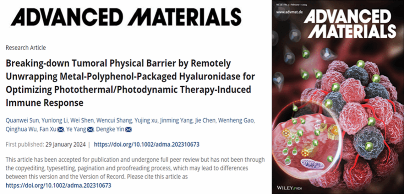 近日,药学院许钒教授、杨晔教授和尹登科教授合作,基于中药活性成分五没食子酰葡萄糖(PGG)设计了一种可控释放的金属-多酚网络作为大分子给药策略,研究成果发表在国际材料学权威期刊《Advanced Materials》(...