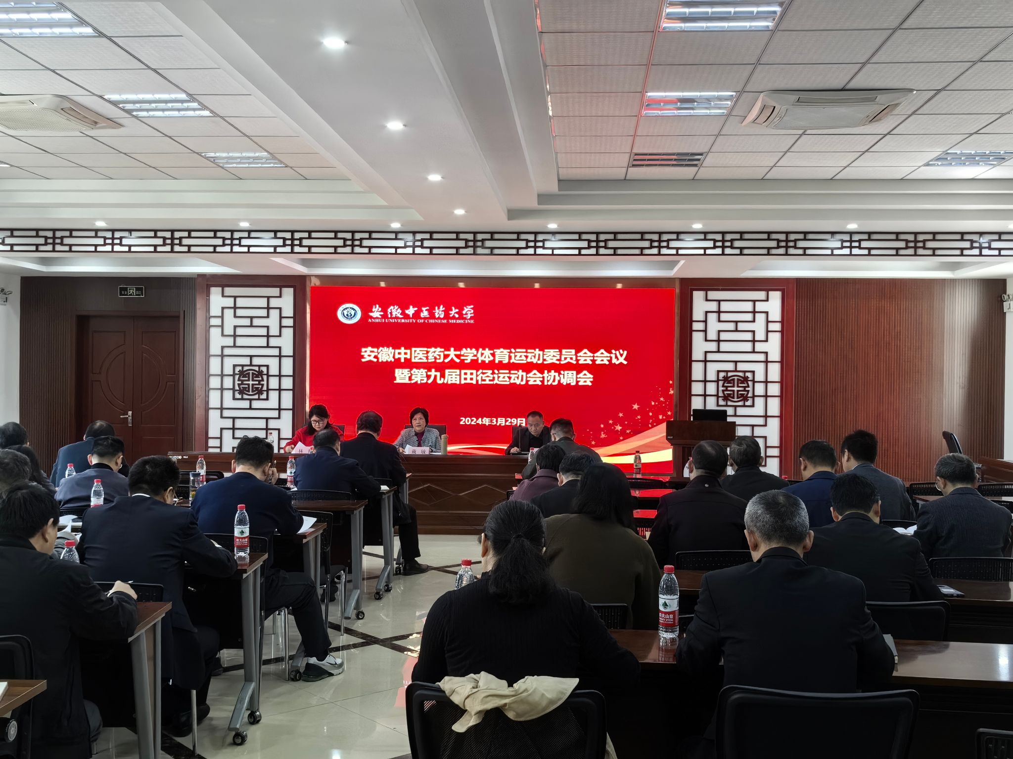 3月29日下午,学校召开体育运动会委员会会议暨校第九届田径运动会协调会。会议由副校长、体育运动委员会主任戴敏主持,体育运动会委员会成员单位主要负责同志参会。戴敏传达《关于举办安徽中医药大学第九届田径运...
