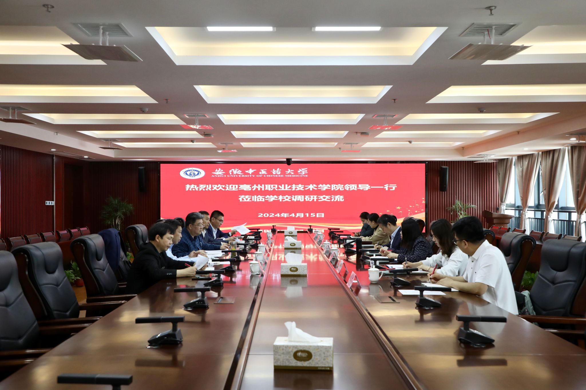 4月15日上午,亳州职业技术学院院长李庆林率队来校调研交流,学校党委常委、副校长魏骅及有关学院负责同志参加座谈或陪同调研。李庆林介绍了亳州职业技术学院近年来发展情况和取得的主要成绩,并就如何提升护理学...