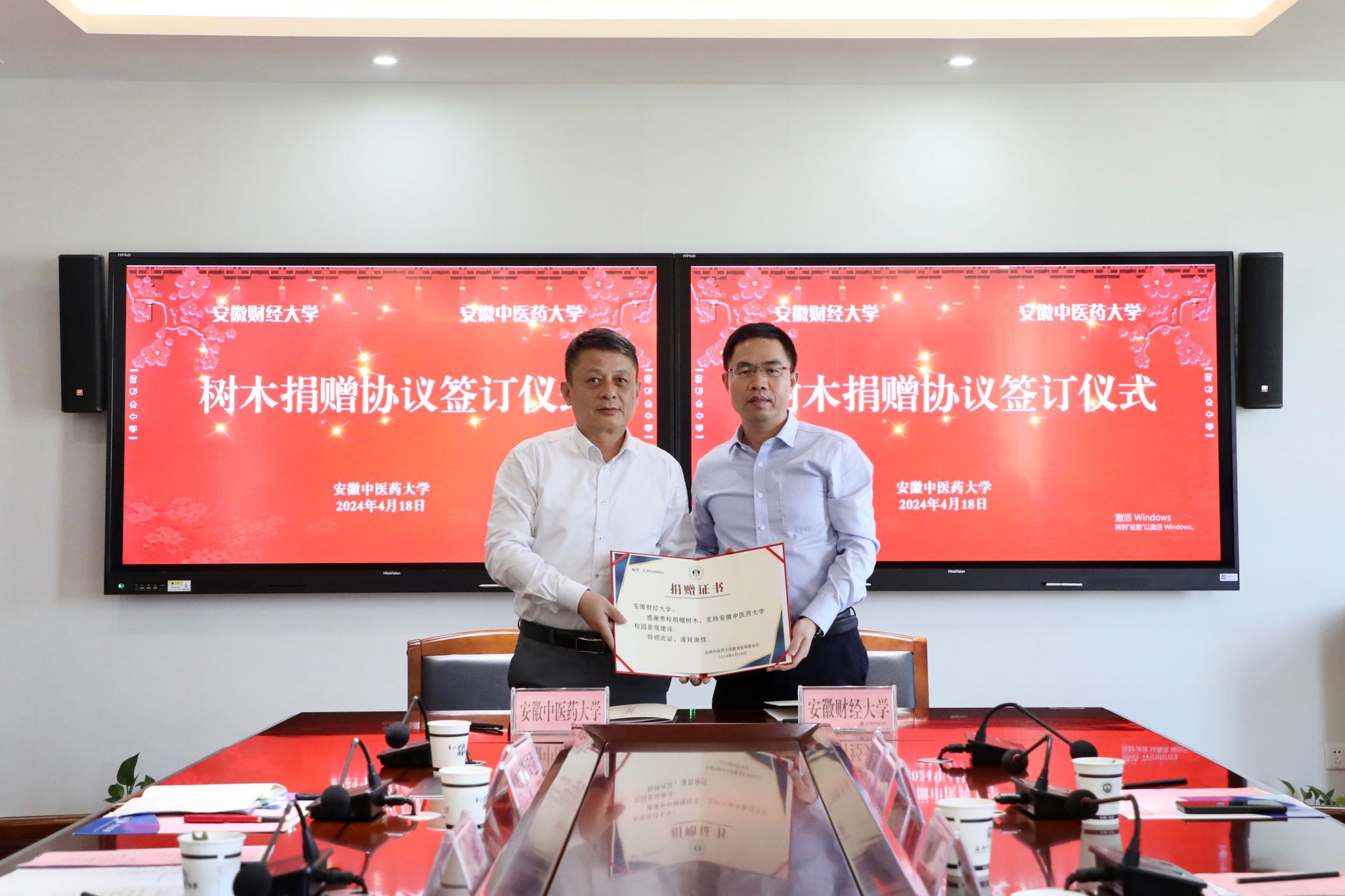 4月18日下午,安徽财经大学向我校捐赠树木仪式在少荃湖校区举行。安徽财经大学党委副书记、校长朱红军,纪委书记、监察专员武刚,我校党委副书记、校长许钒,党委常委、副校长魏骅及两校有关部门负责人参加捐赠仪...