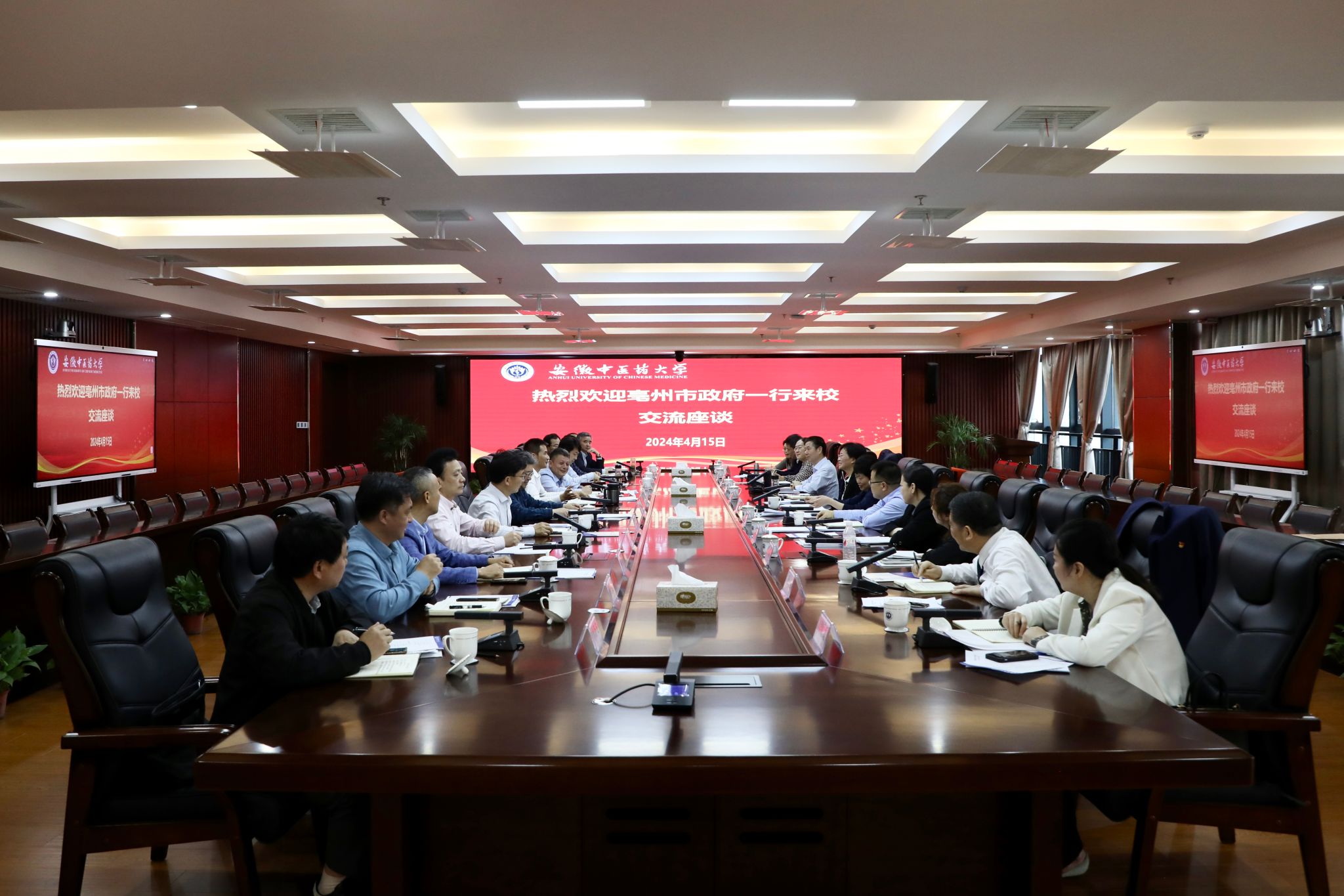 为深入推进中医药传承创新发展,开创校地合作高质量、高能级新局面,4月15日,学校与亳州市政府召开工作交流座谈会。亳州市委副书记、市政府市长秦凤玉,市政府副市长曹振萍,我校党委书记王琦,党委副书记、校长...