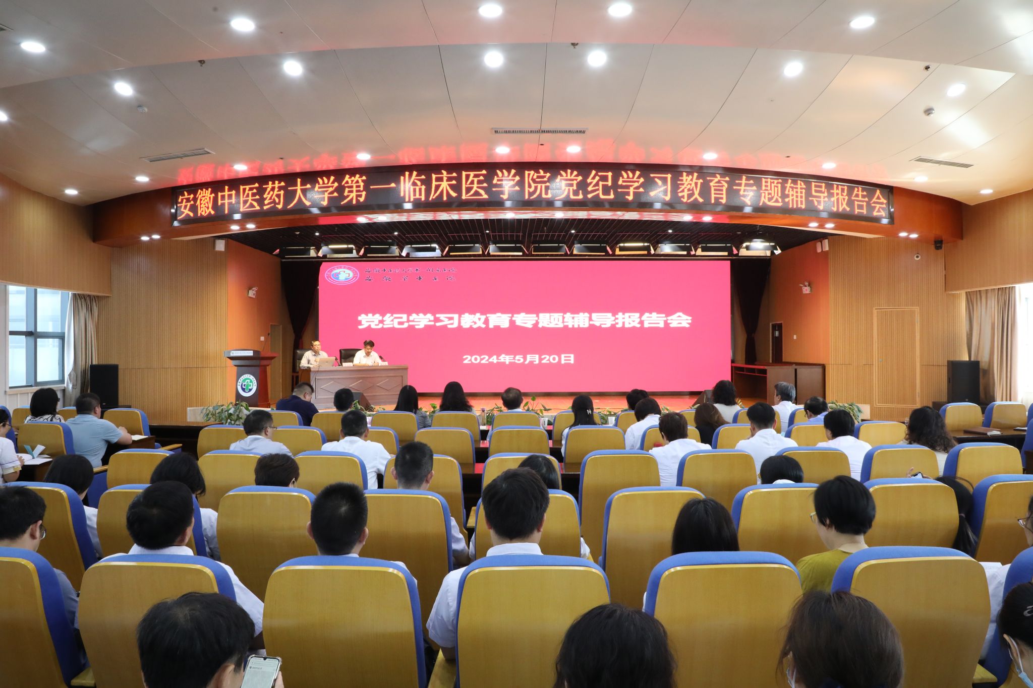 5月20日下午,第一临床医学院举办党纪学习教育专题辅导报告会。学校党委常委、纪委书记、省监委驻学校监察专员石金明就新修订的《中国共产党纪律处分条例》(简称《条例》)作详细解读。学校党委常委、医院党委书...