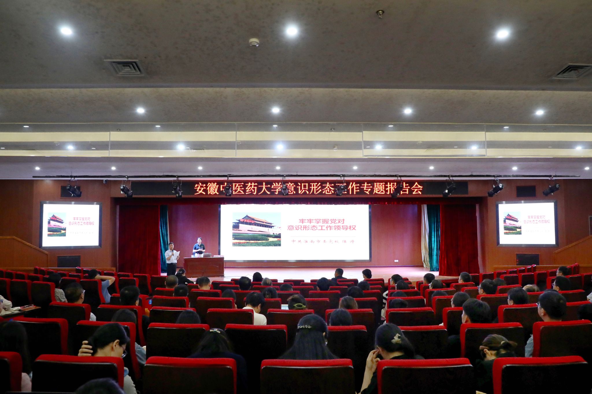 为深入贯彻习近平文化思想,进一步压紧压实意识形态工作责任,5月22日,学校邀请中共淮南市委党校现代管理教研室副主任、副教授陆丹作题为《牢牢掌握党对意识形态工作领导权》的专题报告。报告会由校党委常委、组...