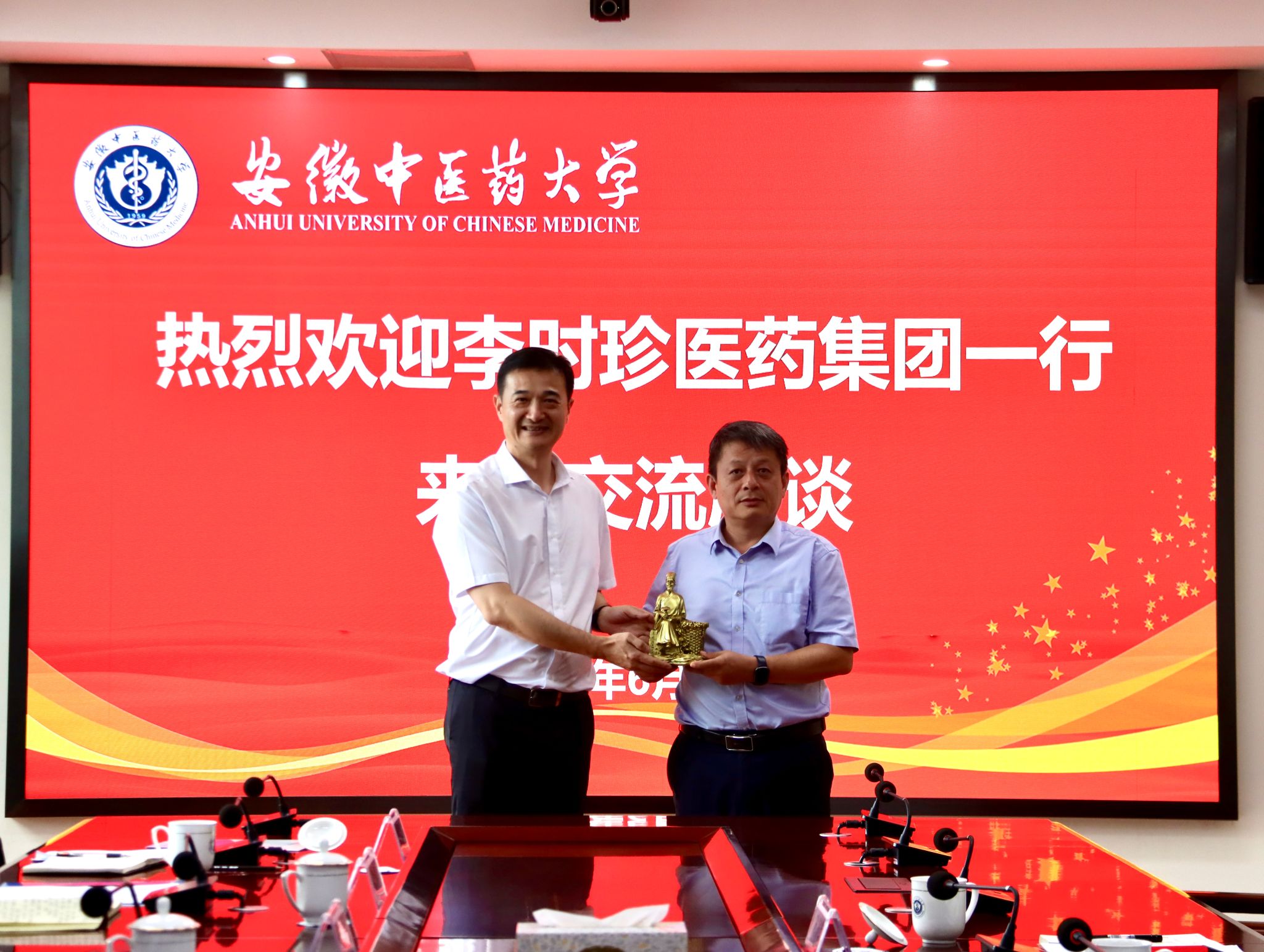 6月25日下午,李时珍医药集团杨明江总裁一行来校,就商洽校企(产学研用)相关合作开展交流座谈。校党委副书记、校长许钒出席,李时珍医药集团项目总监周剑锋,总裁办主任林东旭,合肥公司总经理王坤,安徽省医药...