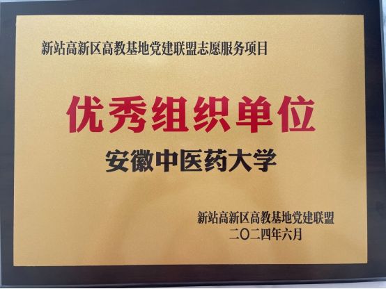 7月3日,高教基地党建联盟志愿服务表彰大会暨磨店社区“黉动磨店”党建示范带品牌发布仪式举行,我校获新站高新区高教基地党建联盟志愿服务项目“优秀组织单位”称号。学校两项志愿服务项目《中医药文化进社区》...