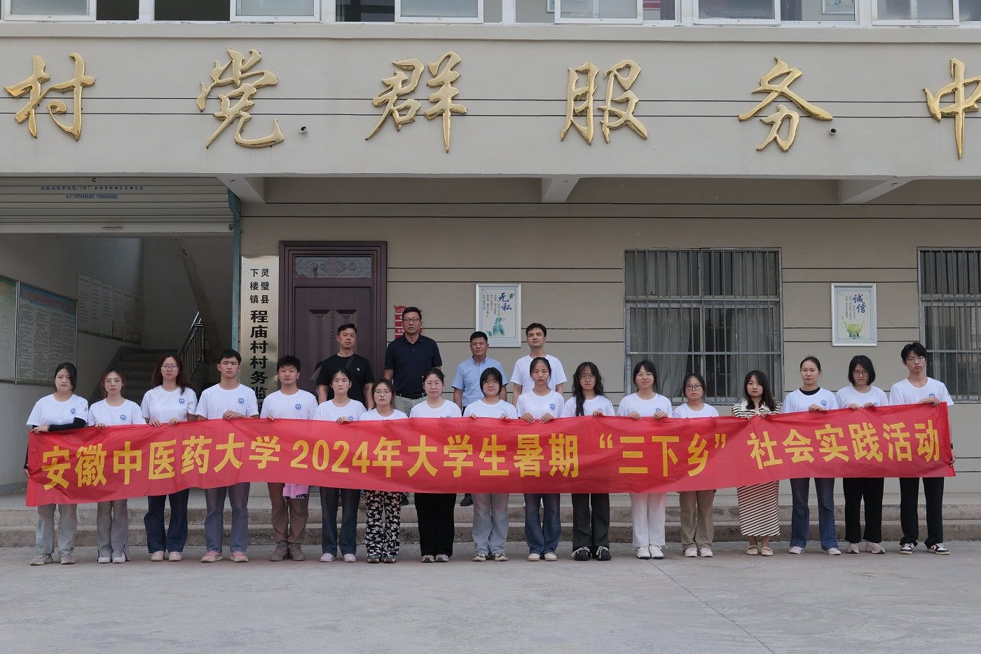 为贯彻落实习近平新时代中国特色社会主义思想,引导学生关注乡村发展、投身乡村振兴,我校“大医精诚”实践团队前往灵璧县下楼镇程庙村开展2024大学生暑期“三下乡”社会实践活动。活动以乡村振兴、青春笃行为目...