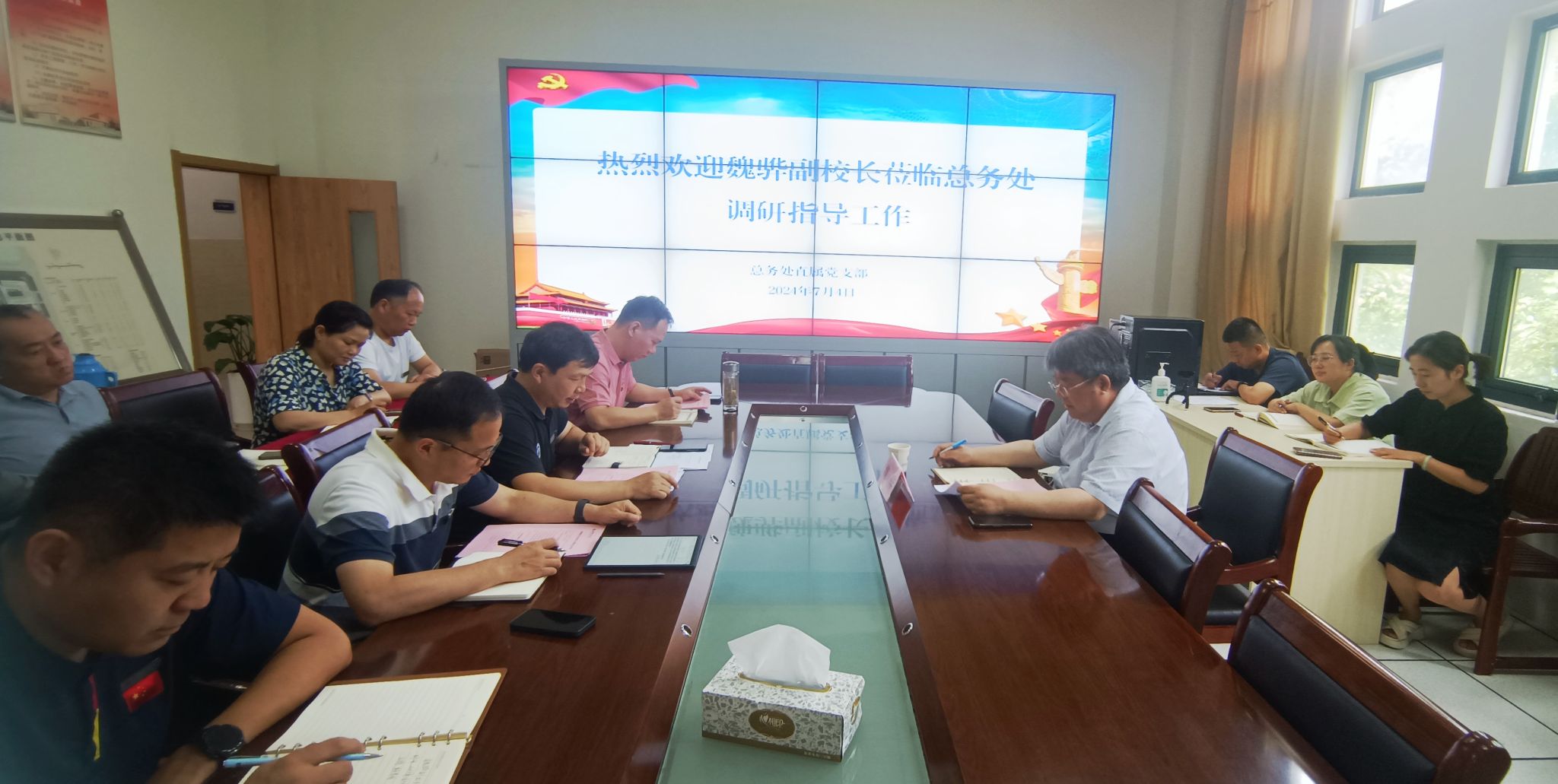 7月4日下午,学校党委常委、副校长魏骅调研指导总务处工作。总务处班子成员及各科室负责人参加会议。魏骅在听取总务处工作汇报后,对总务处上半年的工作给予肯定。他指出,承担着全校后勤服务保障和系列重点任务...