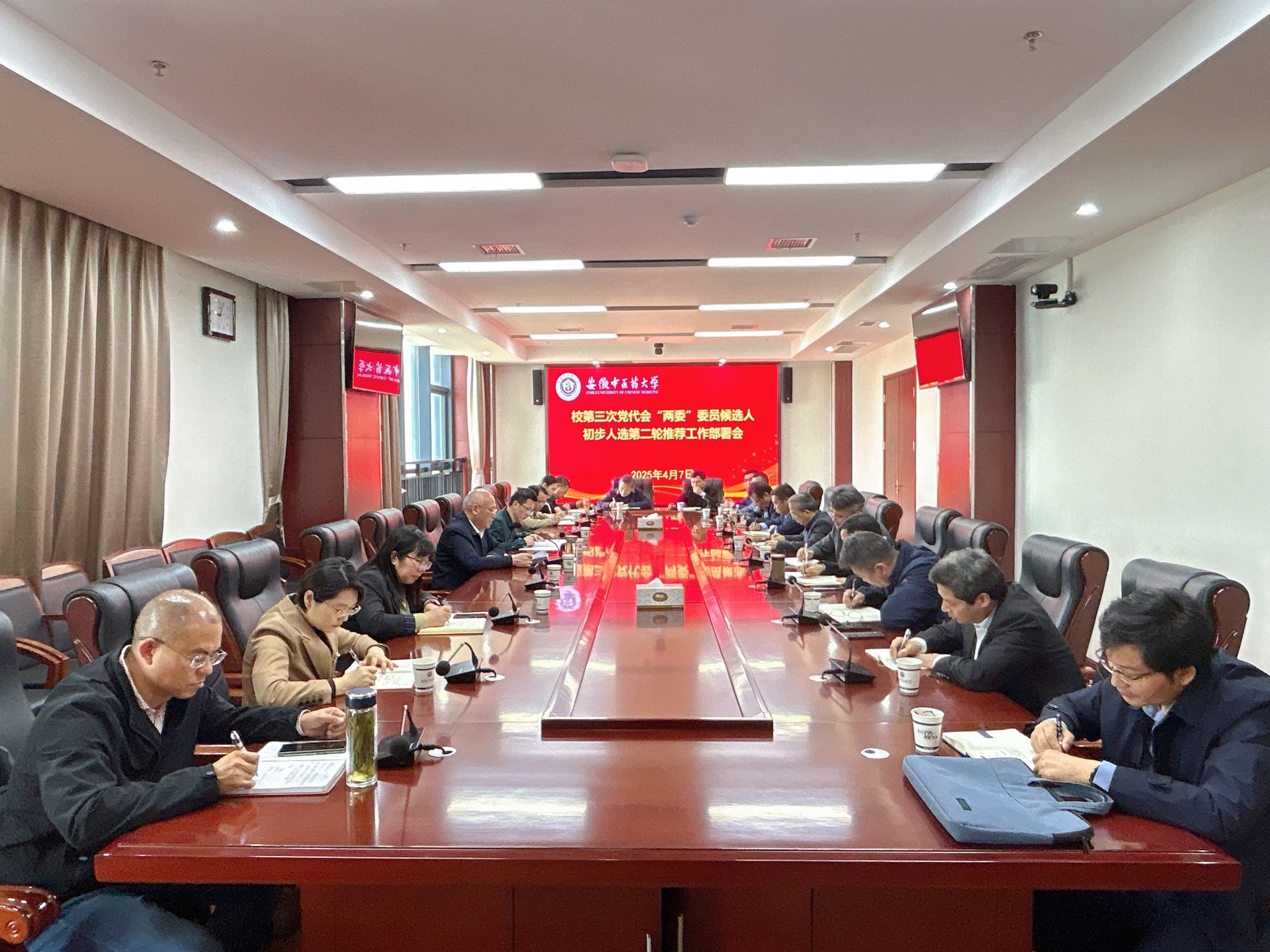 近日,校党委副书记周新发在图书馆708会议室主持召开了校第三次党代会“两委”委员候选人初步人选第二轮推荐工作部署会。各二级党组织主要负责同志参加会议。周新发指出,开好学校第三次党员代表大会是全校师生政...